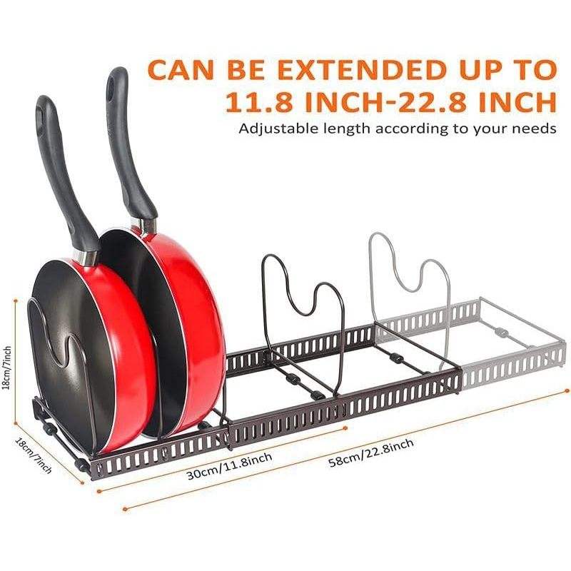 SKY-TOUCH Expandable 10 Compartment Kitchen Cookware Plate Rack PP Material 10 Adjustable Pot Lid Organizer Holder