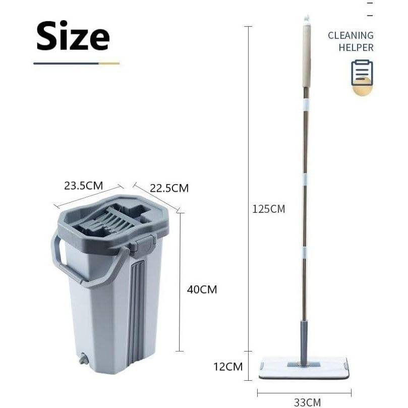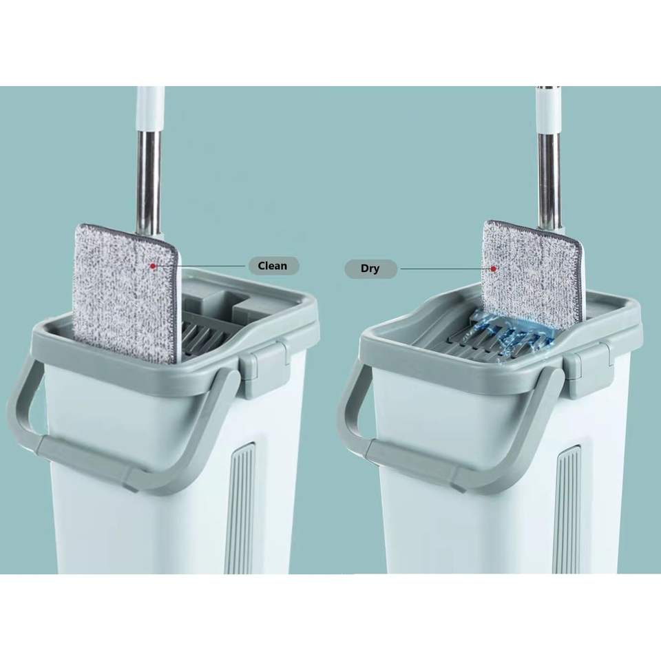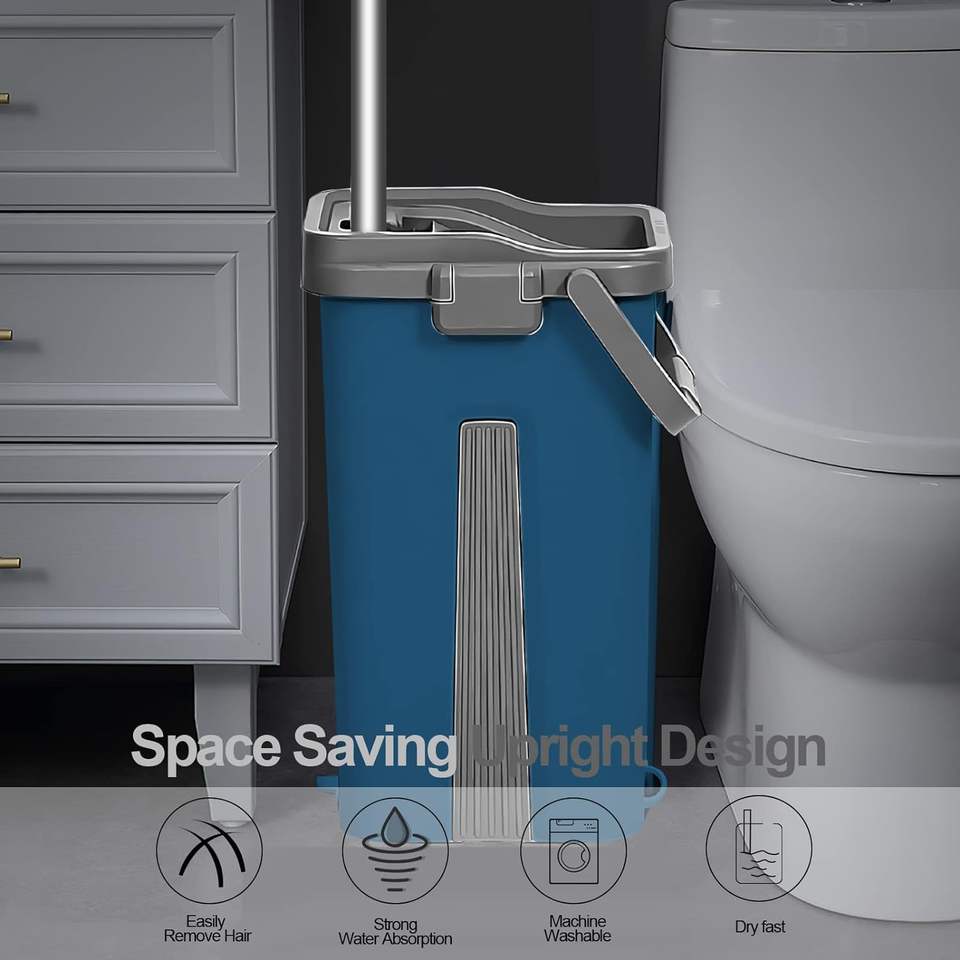 SKY-TOUCH Flat Mop Bucket Set with Long Handle Rectangle Wringer Squeeze System for Home Office Use