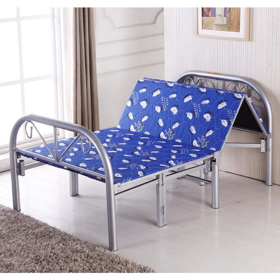เตียงโลหะแบบพับได้ขนาด190x90ซม. โครงสร้างเตียงเหล็กสัมผัสแข็งแรงทนทานอุปกรณ์ติดตั้งฟรีสีฟ้าเตียงคู่ราชินี
