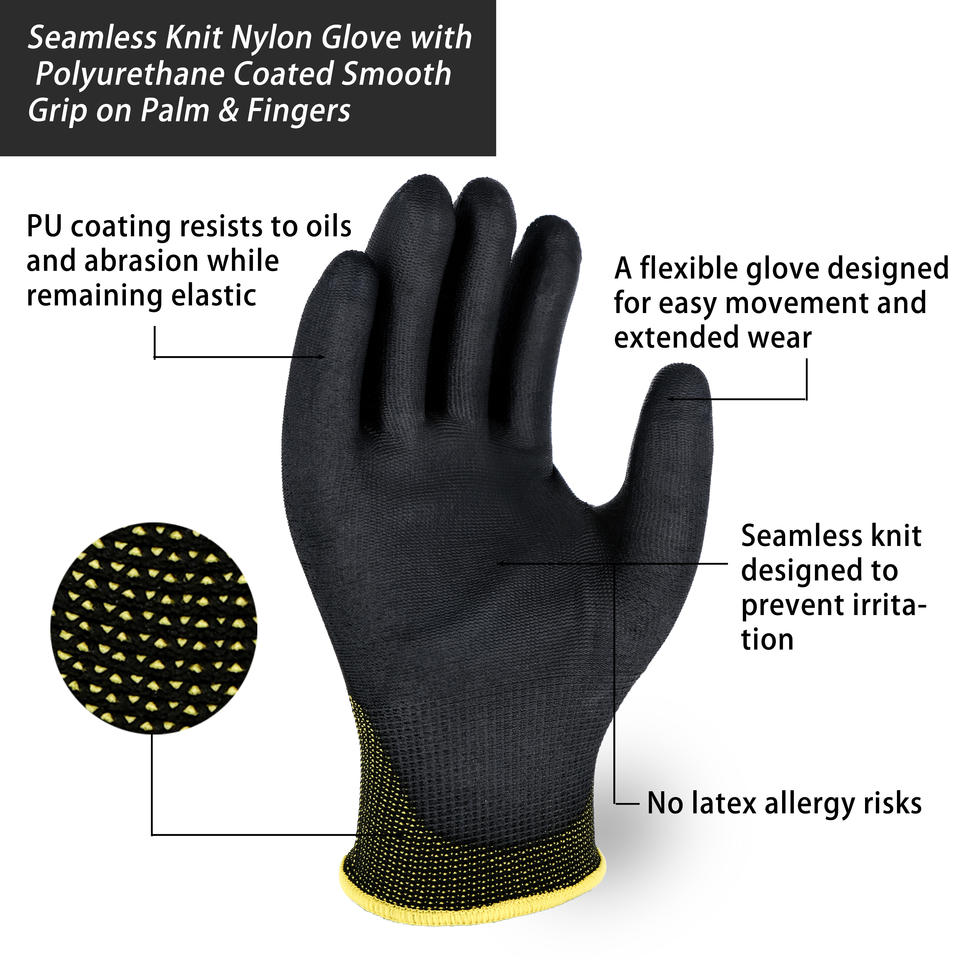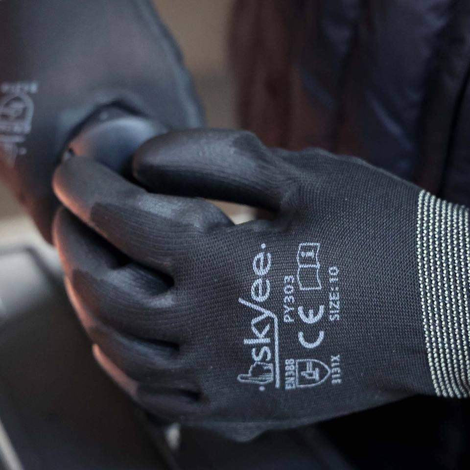 SKYEE ขายดี Pu เคลือบไนลอนสีดำระดับความปลอดภัย3ตัดถุงมือทำงานทนกับ Grib Protect