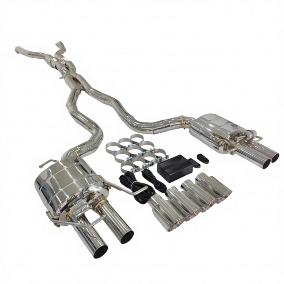 ท่อไอเสีย SKYLEY สำหรับรถบีเอ็มดับเบิลยู เอ็ม5 อี60 อี61/เอ็ม6 อี63 อี64 เครื่องยนต์เอส85 5.0ลิตร วี10 ปี 2005-2011 ทำจากสแตนเลส304 พร้อมวาล์วควบคุมเสียง ระบบไอเสียแบบแคทแบ็ค พร้อมปลายท่อ