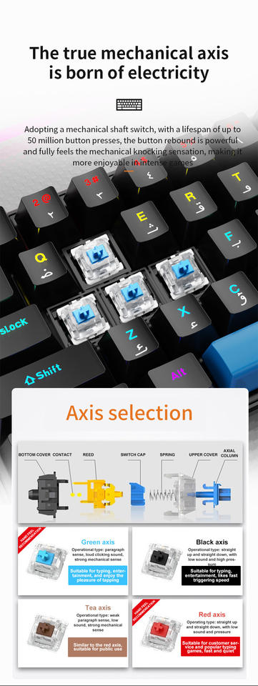 คีย์บอร์ดแบบกลไก SKYLION Arabic K68 สีฟ้า คีย์บอร์ดแบบมีสายภาษาอาหรับ แยกสายคีย์บอร์ด คีย์บอร์ดแบบกลไกสำหรับคอมพิวเตอร์และแล็ปท็อป