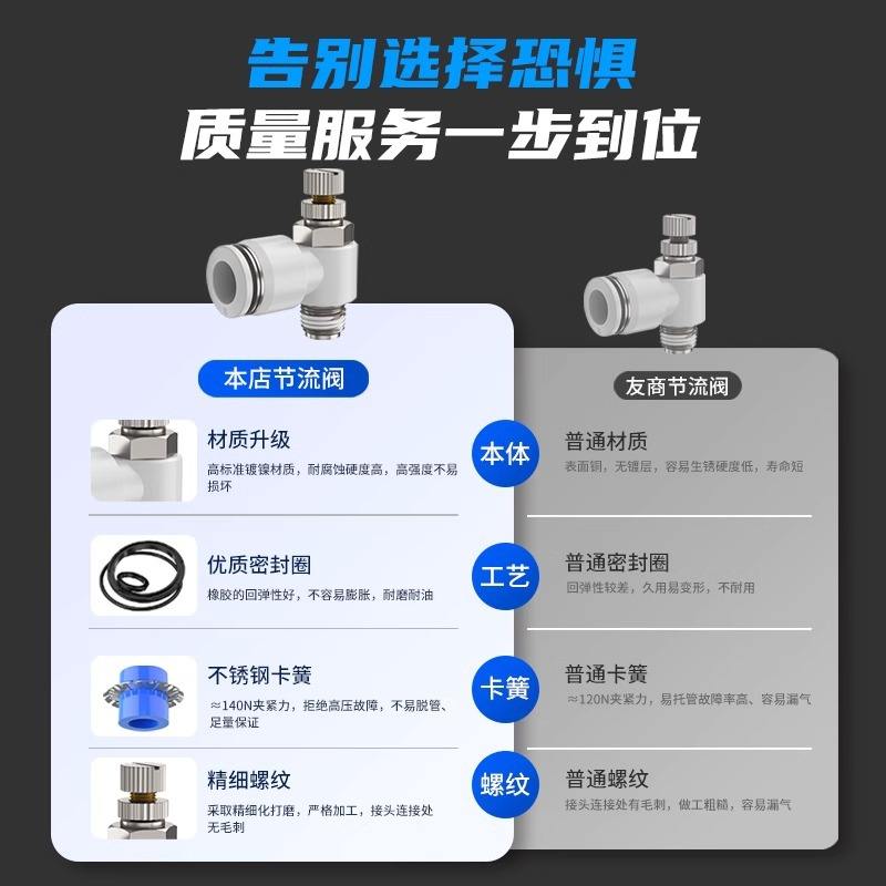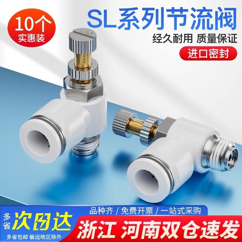 วาล์วควบคุมความเร็วแบบนิวเมติก SL สำหรับกระบอกสูบแบบทำงานเร็ว พร้อมข้อต่อปรับระดับได้ ขนาด 4/6/8/10/12-M5/01/02/03/04