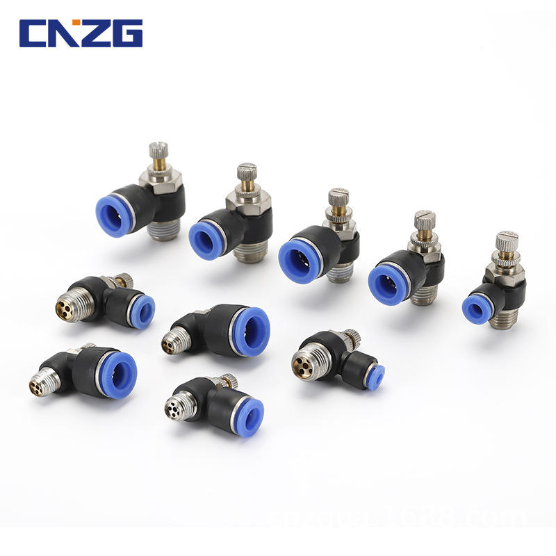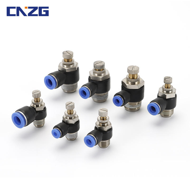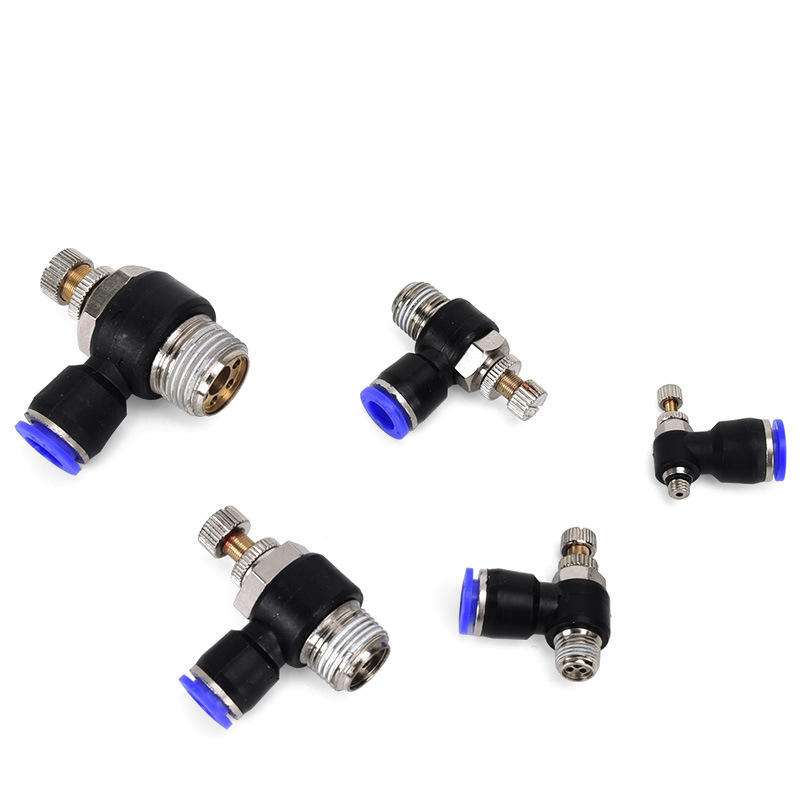 วาล์วควบคุมลมแบบ SL Pneumatics แบบเชื่อมต่อเร็ว สำหรับควบคุมความเร็วกระบอกสูบ วาล์วควบคุมความเร็ว ข้อต่อท่อ และสายลม