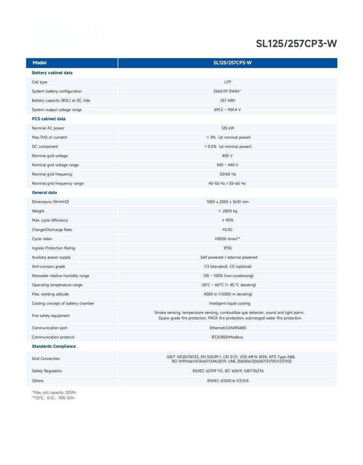 Battery capacity (BOL) at DC side:257 kWh