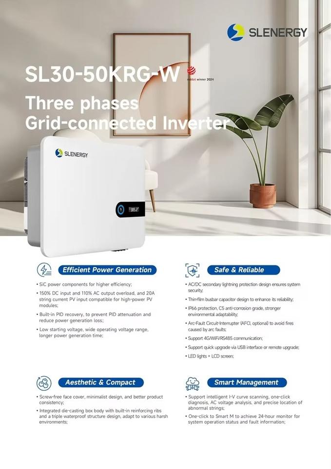 อินเวอร์เตอร์กริด3เฟส50KRG-W/33/36/40/แรงดันสูง480V ประสิทธิภาพสูงสุด99% CEC ถ่วงน้ำหนัก98 5%