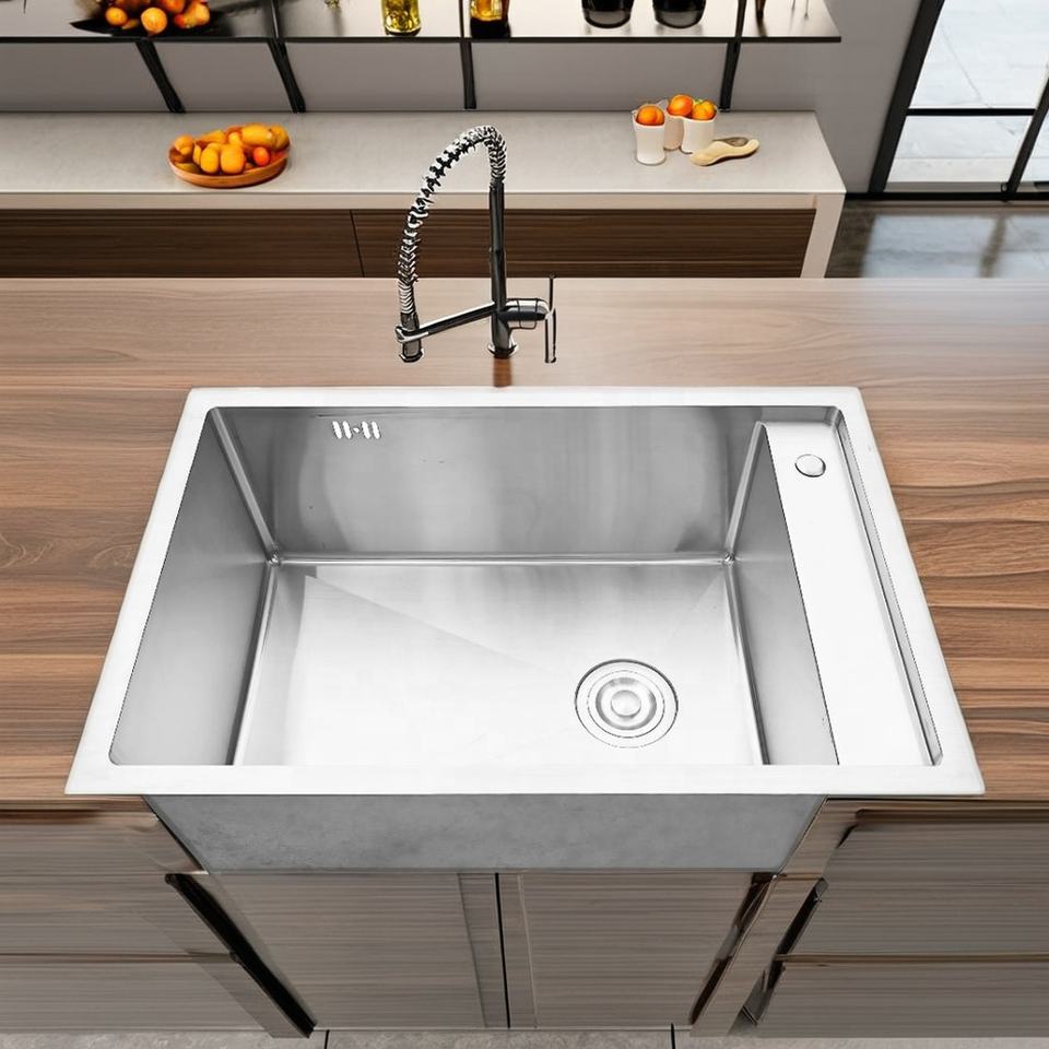 อ่างล้างจานครัวสเตนเลสสตีล 304 รุ่น SM 8046 ทรงสี่เหลี่ยมผืนผ้า ผลิตด้วยมือจากโรงงานในเวียดนาม ดีไซน์รูเดียว