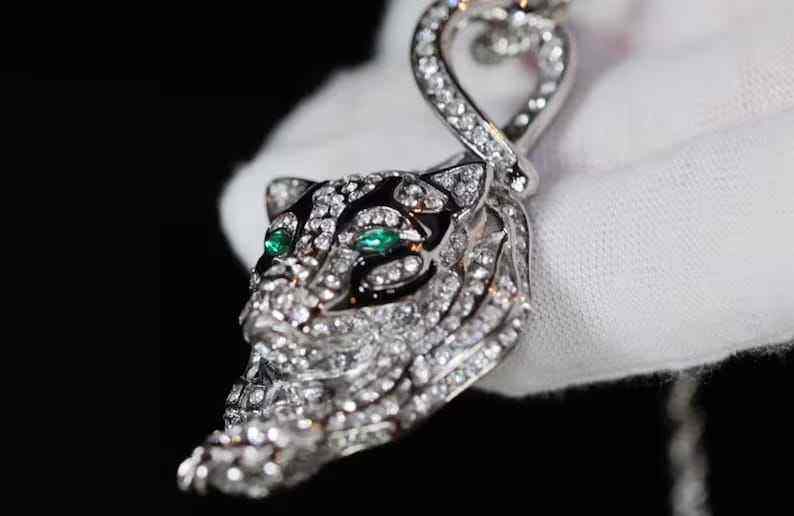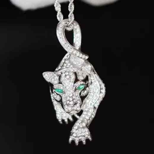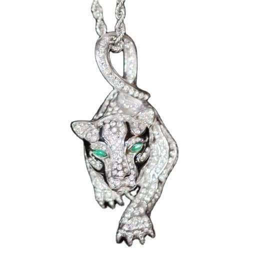 จี้เสือดำชุบโรเดียมสำหรับผู้ชายจาก SM Jewels ดีไซน์โดดเด่นสไตล์ฮิปฮอป ประดับเพชรโมอิสซาไนต์ ดวงตาสีเขียว เหมาะสำหรับเป็นของขวัญในงานปาร์ตี้