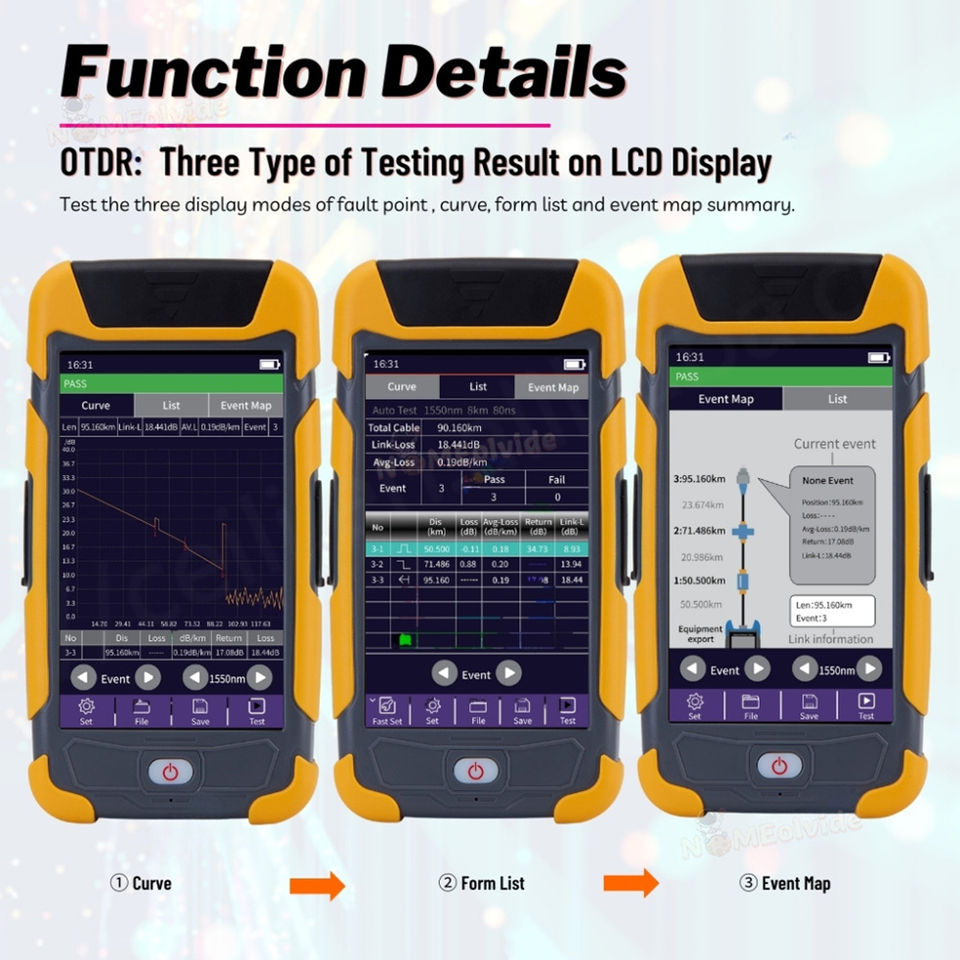 SM PRO OTDR 1310/1550nm 850/1300nm 1625/1650nm ตัวสะท้อนแสง4.3นิ้วสัมผัส opm VfL แผนที่กิจกรรม RJ45สาย TCP