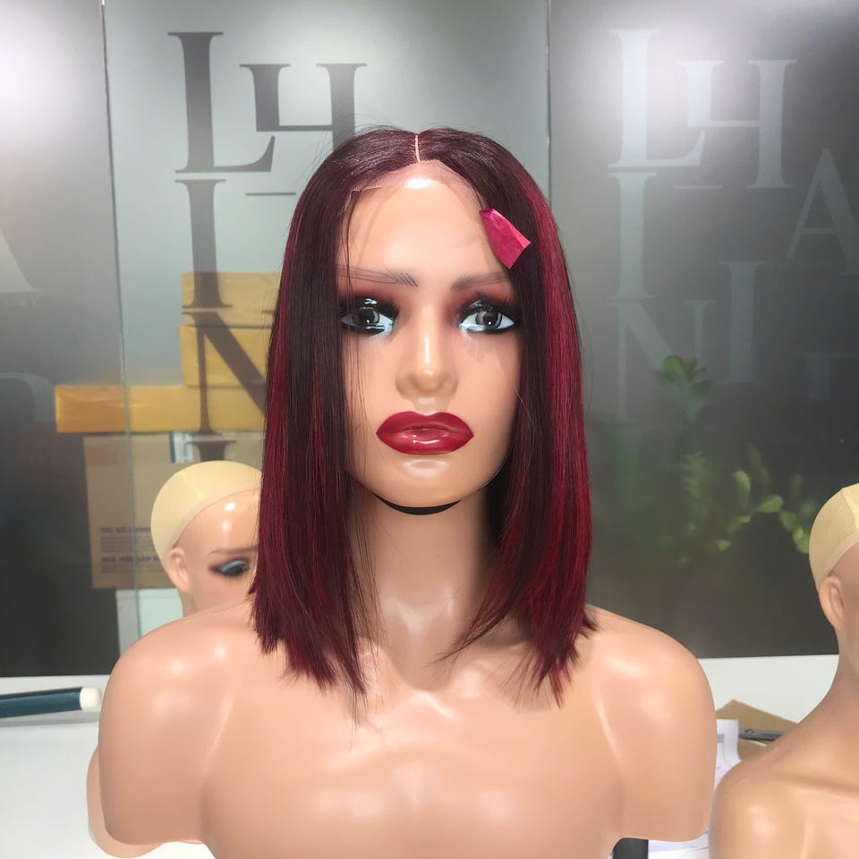 วิกผมตรงลูกไม้ด้านหน้าสีไฮไลท์สีสำหรับไวน์แดงวิกผมมนุษย์เวียดนาม