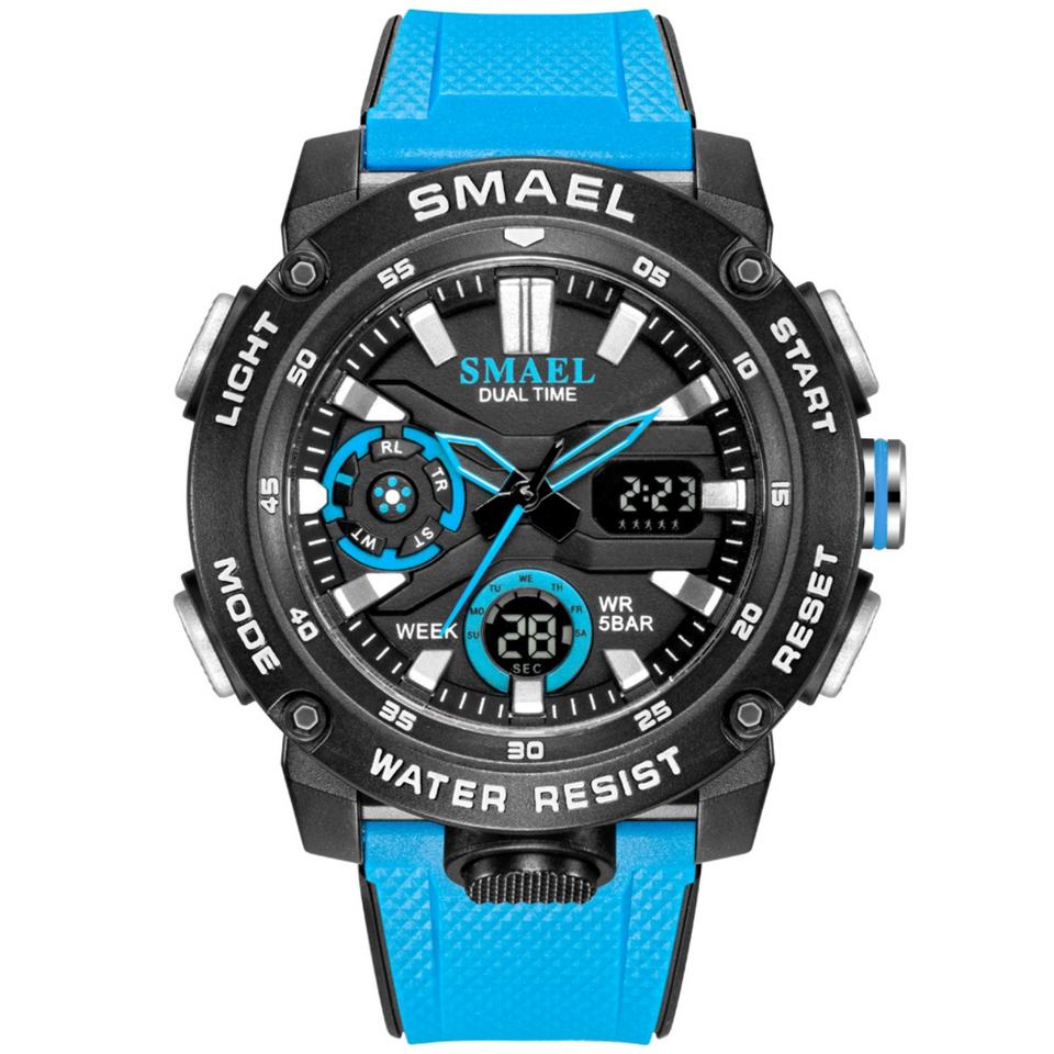 นาฬิกา SMAEL 1907 ระบบสองเวลา นาฬิกาดิจิตอลแบบ LED สำหรับเล่นกีฬา กันน้ำ นาฬิกาหน้าปัดใหญ่สำหรับผู้ชาย