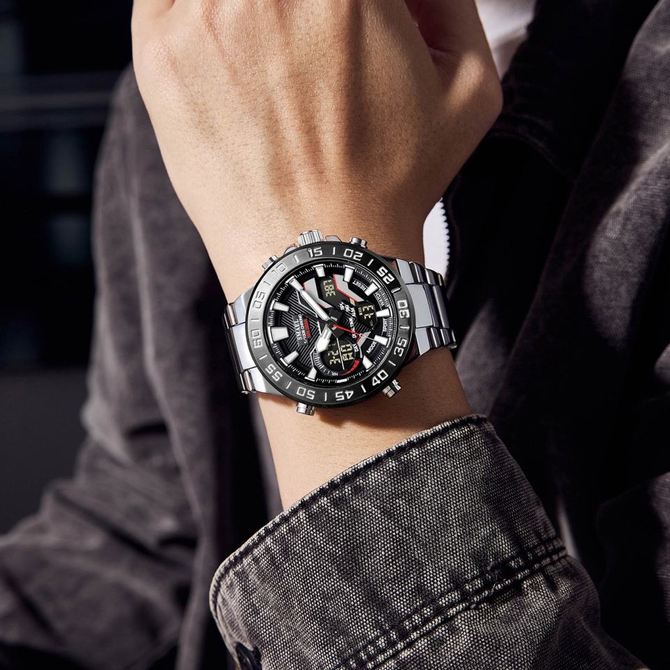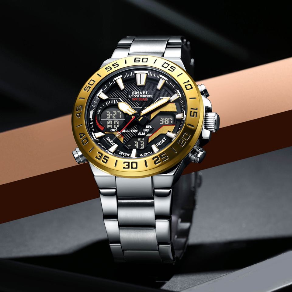 นาฬิกา SMAEL 6071 รุ่นหรูหรา สำหรับนักธุรกิจ ระบบอนาล็อก-ดิจิตอล โครโนกราฟ กันน้ำ 5BAR พร้อมฟังก์ชั่นเรืองแสง ตั้งปลุก ตัวเรือน/หน้าปัดโลหะผสม สายสแตนเลส