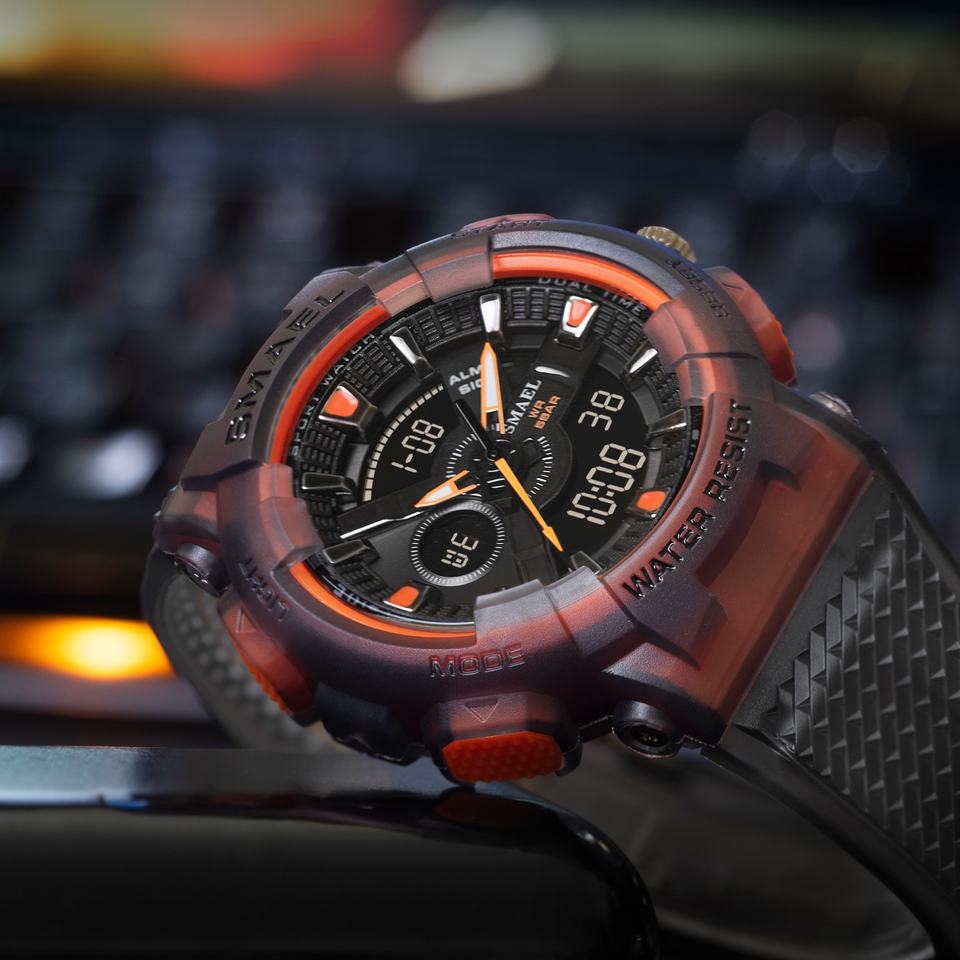 นาฬิกาข้อมือผู้ชาย SMAEL 8006 สายเรซิ่น กันน้ำ 50 เมตร นาฬิกาสปอร์ต อนาล็อก อิเล็กทรอนิกส์ ควอตซ์ ดิจิตอล