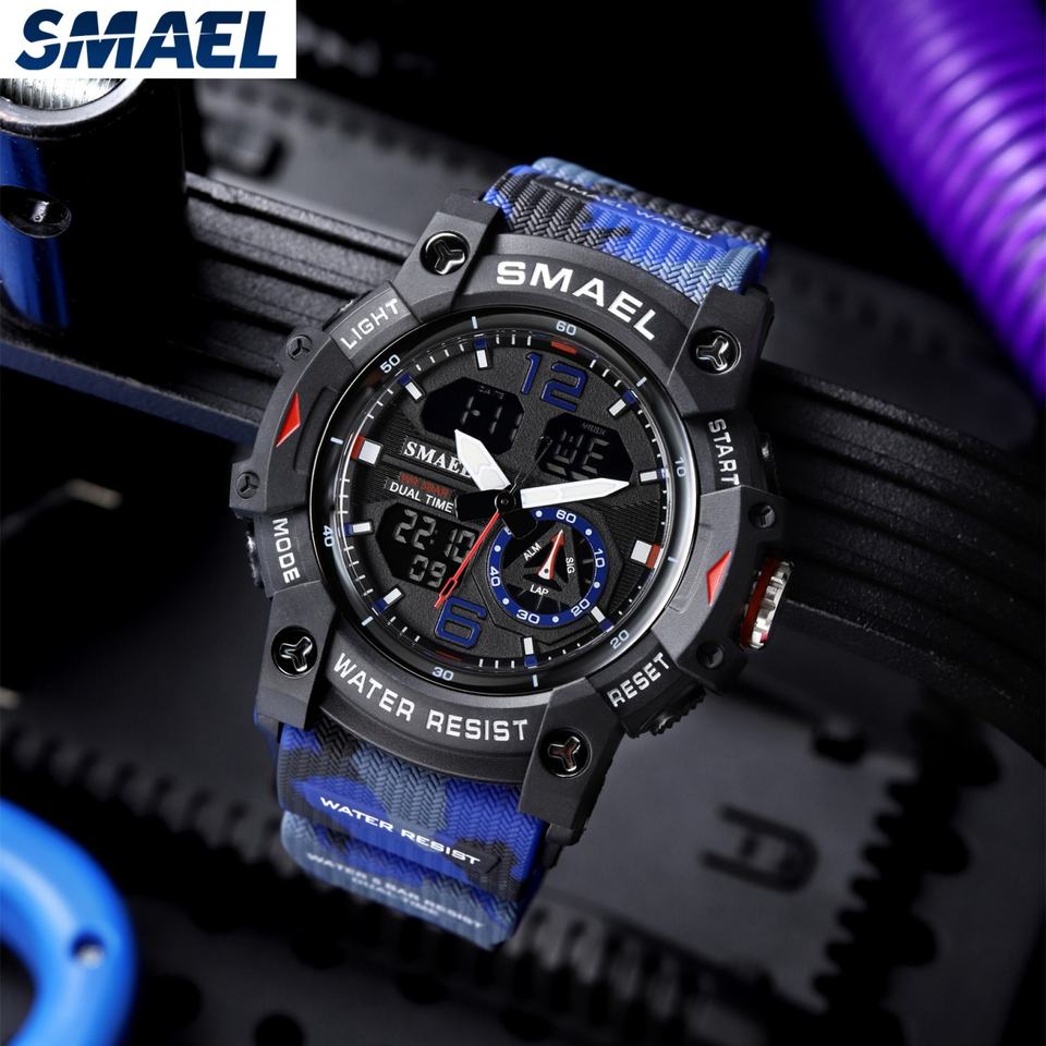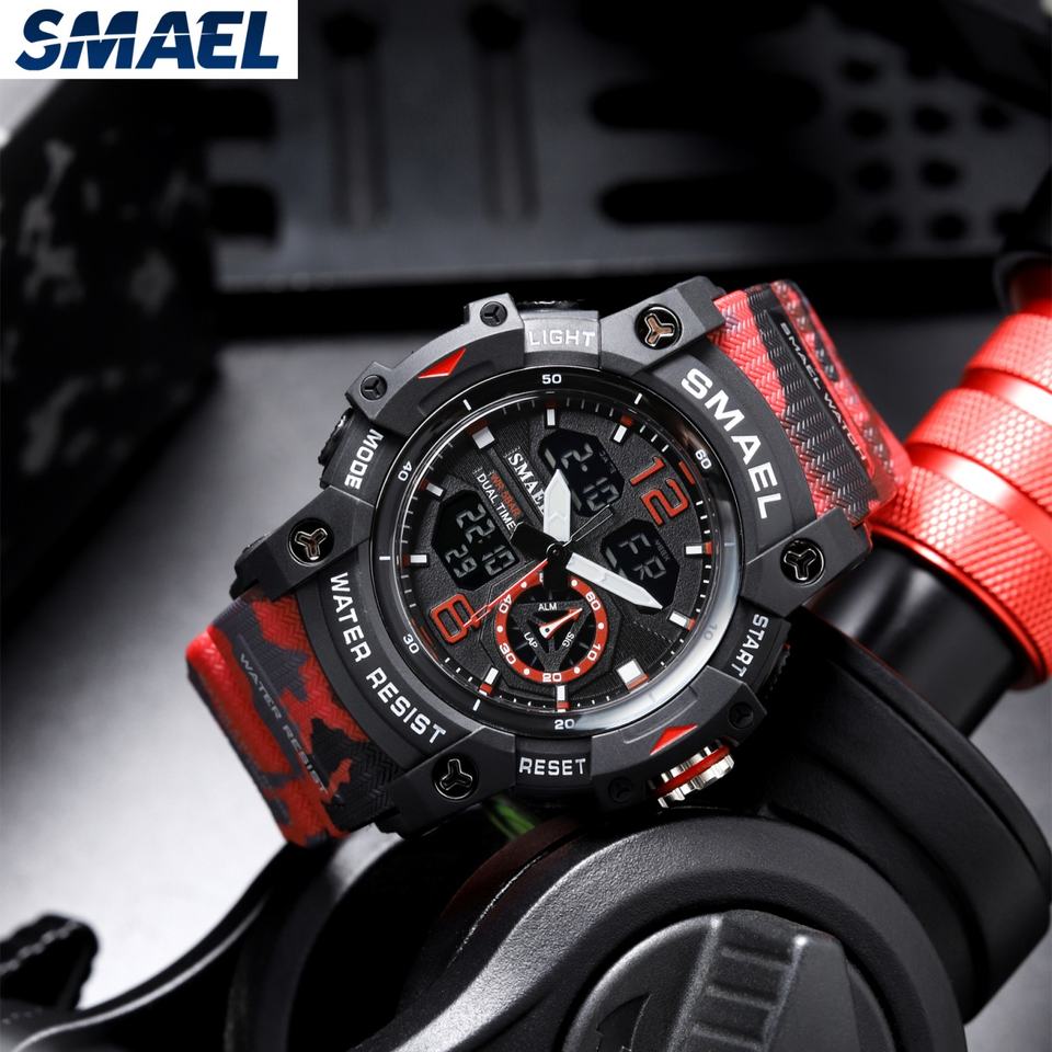 นาฬิกาข้อมือผู้ชาย SMAEL 8007 ลายพราง นาฬิกาสปอร์ตหรูหรา กันน้ำ ทนทานต่อแรงกระแทก นาฬิกาดิจิตอล Relogio Masculino