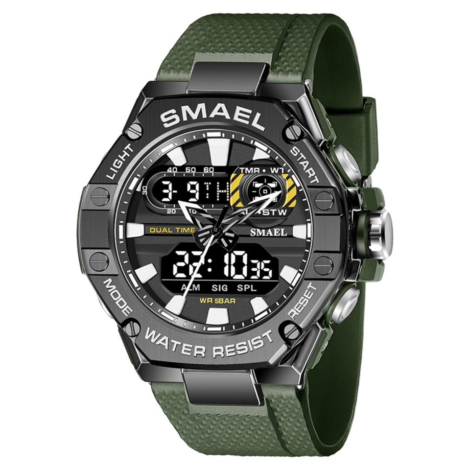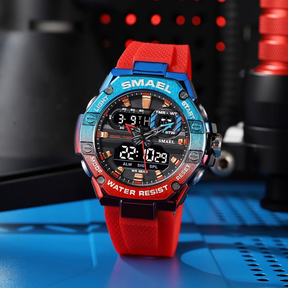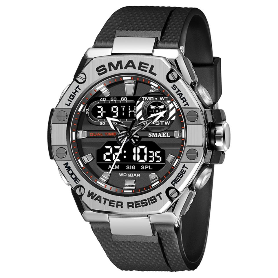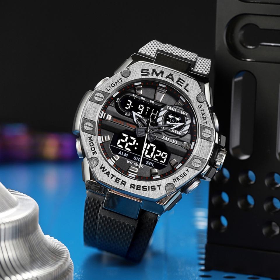 นาฬิกาดิจิตอล SMAEL 8066 กันน้ำ นาฬิกาควอตซ์โลหะผสม นาฬิกาสปอร์ต Relojes De Hombre นาฬิกาอิเล็กทรอนิกส์แบบสปอร์ต