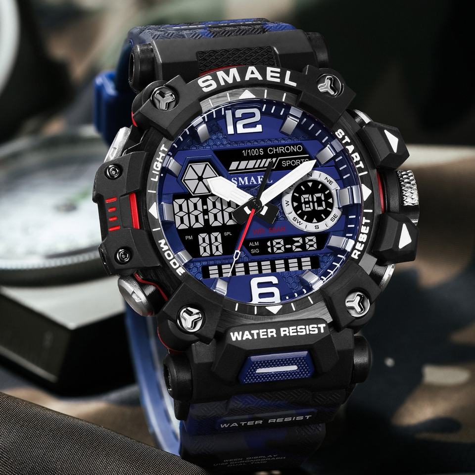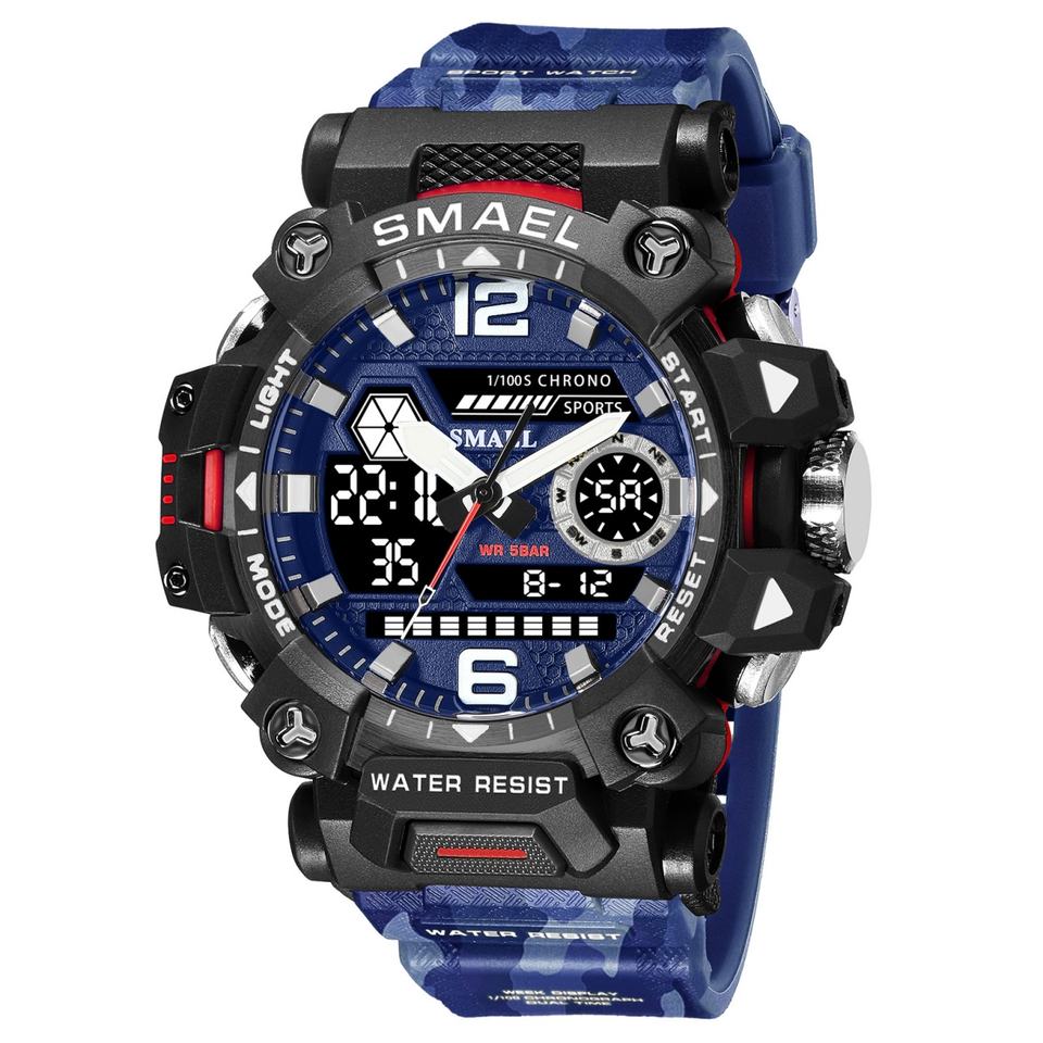 SMAEL 8072MC นาฬิกาดิจิตอลสำหรับผู้ชายแบบสปอร์ต ตัวเรือนพลาสติกเรืองแสง กันน้ำ 5ATM ระบบควอตซ์