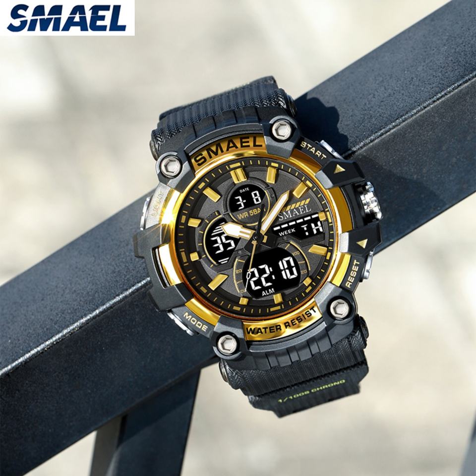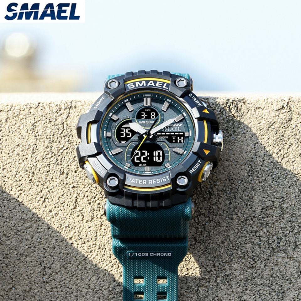 นาฬิกาข้อมือดิจิตอลเรืองแสง SMAEL 8079 สำหรับผู้ชาย นาฬิกาจับเวลา LED พร้อมระบบปลุก นาฬิกาอิเล็กทรอนิกส์สำหรับเล่นกีฬา