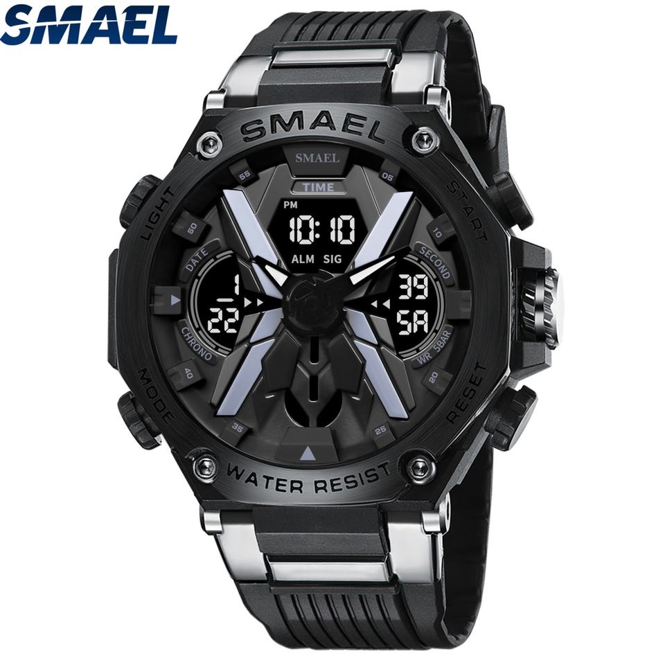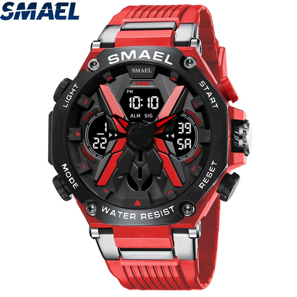 SMAEL 8087 นาฬิกาสปอร์ตสำหรับผู้ชาย นาฬิกาดิจิตอลจอแสดงผล LED สำหรับกิจกรรมกลางแจ้ง พร้อมนาฬิกาจับเวลา สายพลาสติกขนาดใหญ่ กันน้ำ