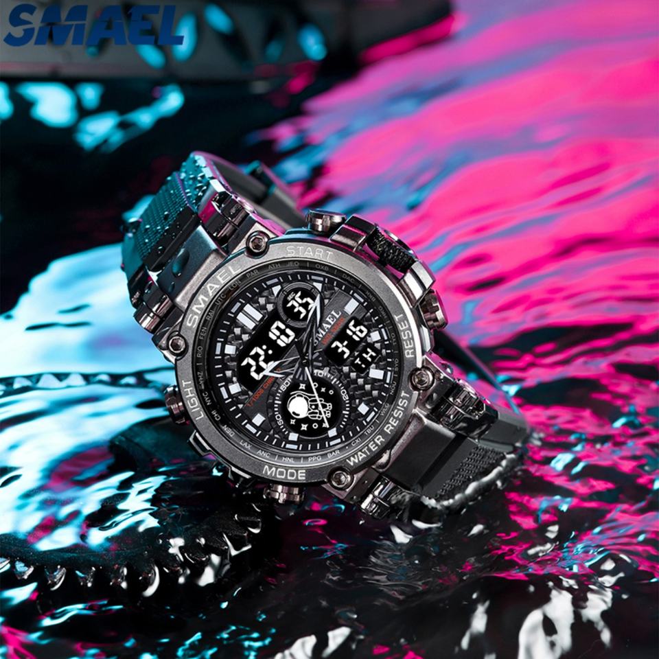 นาฬิกาดำน้ำ SMAEL 8093 สำหรับผู้ชาย พร้อมโครโนกราฟ หน้าปัดเรืองแสง จอแสดงผล LED กันน้ำ 50 บาร์ สำหรับใช้งานกลางแจ้ง