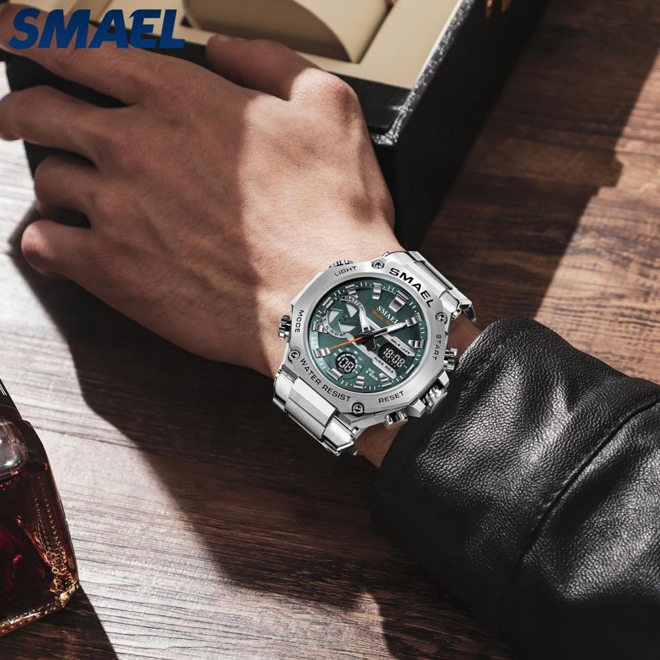 SMAEL 8097 Mens Watches Luxury Stainless Steel Quartz Wristwatch Calendar Luminous Clock Men Business Casual Watch Reloj Hombre