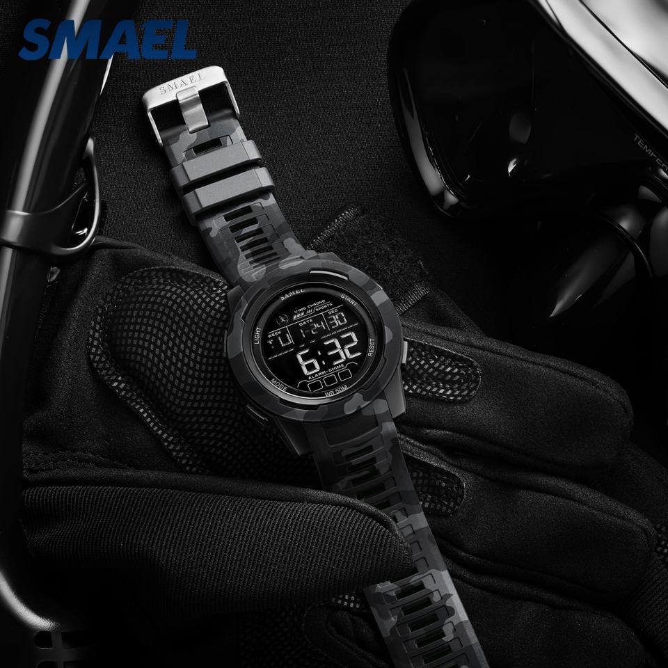 นาฬิกาข้อมือ SMAEL 8105MC ลายพราง แฟชั่นผู้ชาย จอ LCD ดิจิตอล กันน้ำ นาฬิกาสปอร์ตโครโนกราฟ สายพลาสติก ลำลอง อิเล็กทรอนิกส์
