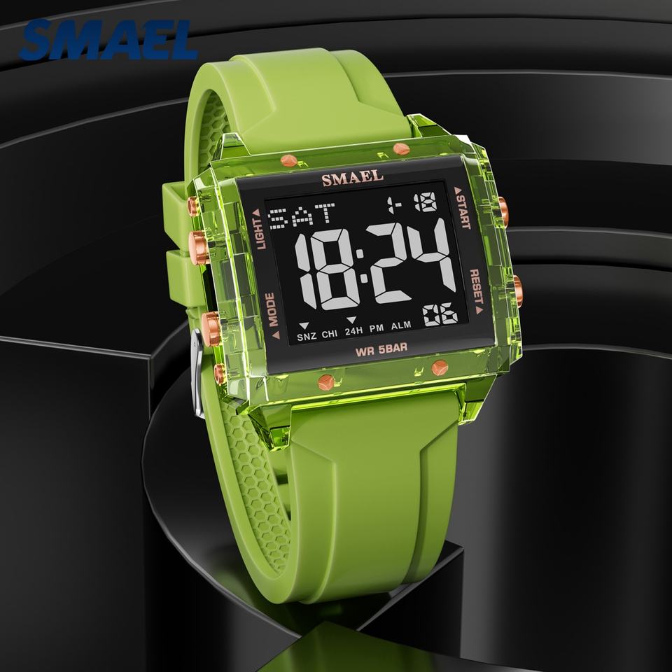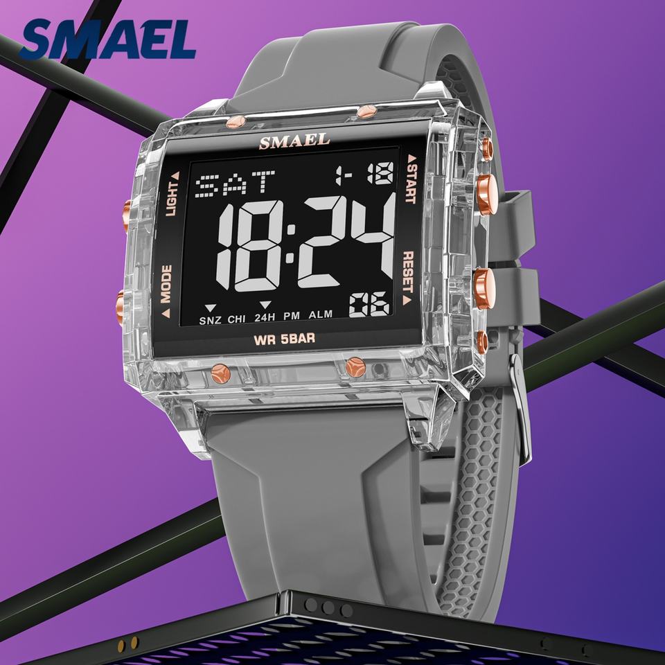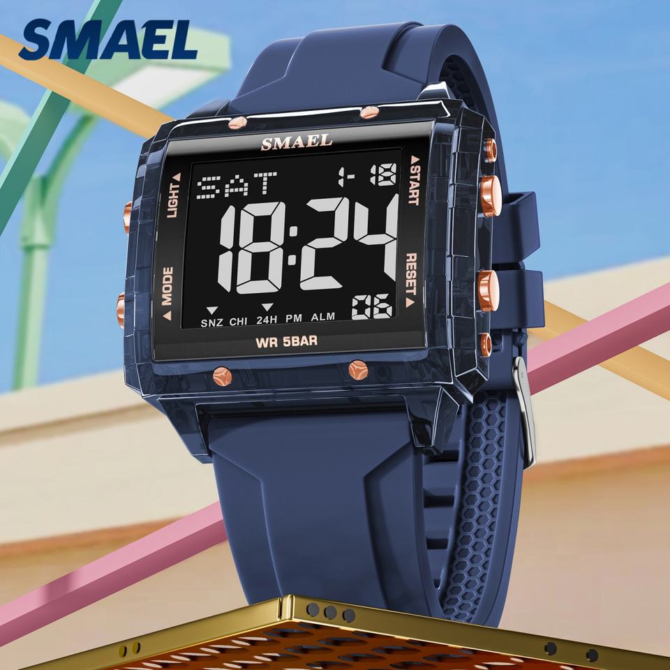 SMAEL 8128 นาฬิกาดิจิตอลสำหรับผู้ชายกันน้ำได้ 50 ม. พร้อมนาฬิกาจับเวลาและสายซิลิโคน