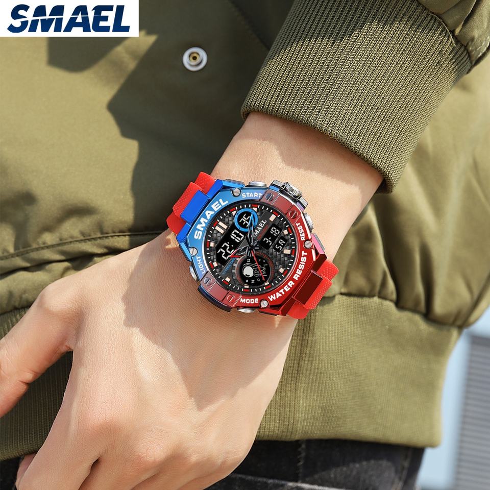 นาฬิกาสปอร์ต SMAEL รุ่นใหม่สำหรับผู้ชาย 8068 นาฬิกากีฬากลางแจ้งกันน้ำ LED อิเล็กทรอนิกส์ สายยาง นาฬิกาดิจิตอลสำหรับนักเรียน