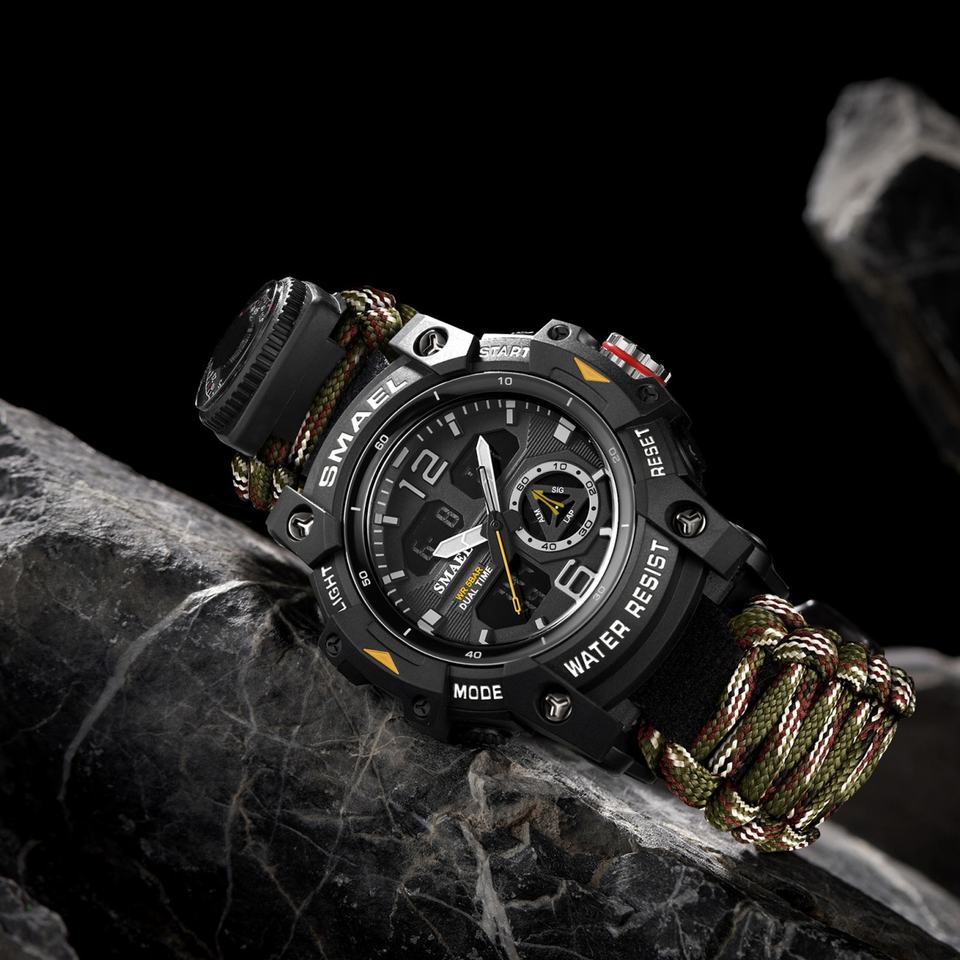 นาฬิกาควอตซ์ดิจิตอล SMAEL รุ่นใหม่ 8007 นาฬิกากีฬากลางแจ้งอเนกประสงค์ สำหรับสถานการณ์ฉุกเฉิน สายไนลอนกันน้ำ