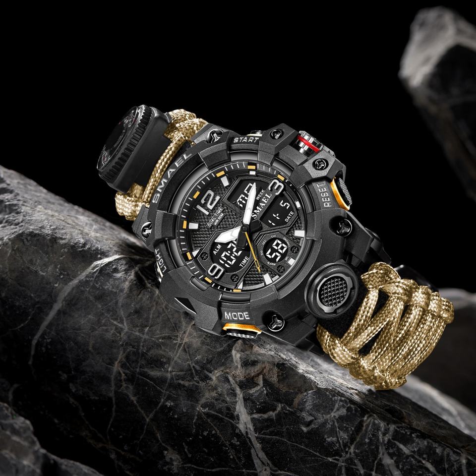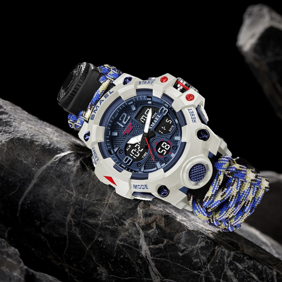 นาฬิกา SMAEL รุ่นใหม่ มัลติฟังก์ชั่น นาฬิกาอนาล็อกดิจิตอล 8008 สำหรับกิจกรรมกลางแจ้ง กันน้ำ สายไนลอน
