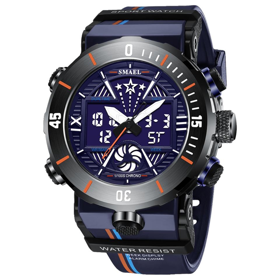 SMAEL นาฬิกาสปอร์ตควอตซ์สำหรับผู้ชาย 8051 จอแสดงผลแบบอะนาล็อก-ดิจิตอล นาฬิกาจับเวลา นาฬิกาปลุก โครโนกราฟ กันน้ำ