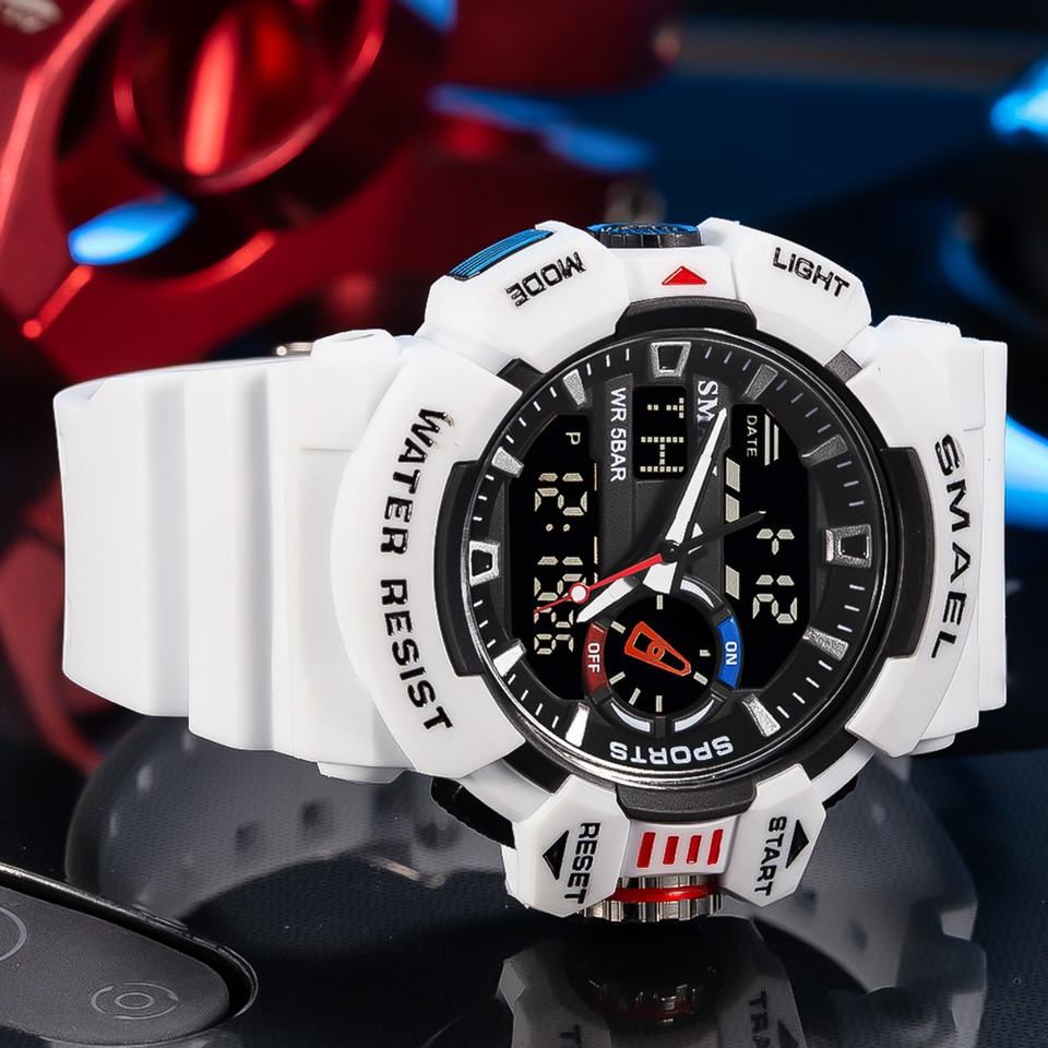 นาฬิกา SMAEL รุ่น 8043 นาฬิกาข้อมือผู้ชายแบบจอแสดงผลคู่ กันน้ำ นาฬิกาดิจิตอลและอนาล็อกแบบสปอร์ต พร้อมไฟ LED