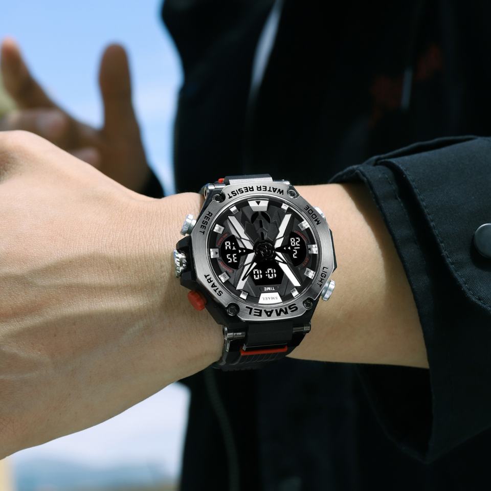 นาฬิกาข้อมือดิจิตอล SMAEL รุ่น 8087 กันน้ำ นาฬิกาสปอร์ต แสดงเวลาสองระบบ พร้อมปฏิทิน นาฬิกาอนาล็อก-ดิจิตอลสำหรับผู้ชาย