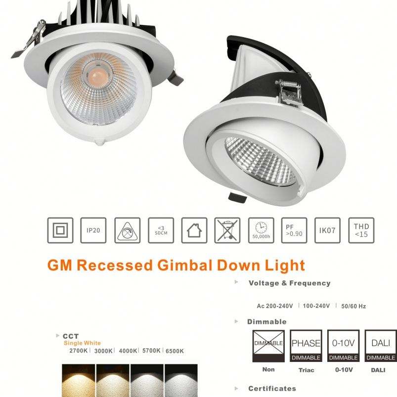 ไฟดาวน์ไลท์ LED แบบสมาร์ท Gimbal - มาตรฐาน IP44 รับประกัน 5 ปี สำหรับไฟส่องสว่างในคลังสินค้า