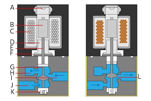 พลาสติก (ตัวเรือนคอยล์), โลหะ (ตัววาล์ว)