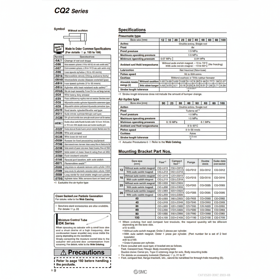 กระบอกสูบขนาดกะทัดรัด CDQ2B125-35DCMZ ชิ้นส่วนนิวเมติก SMC