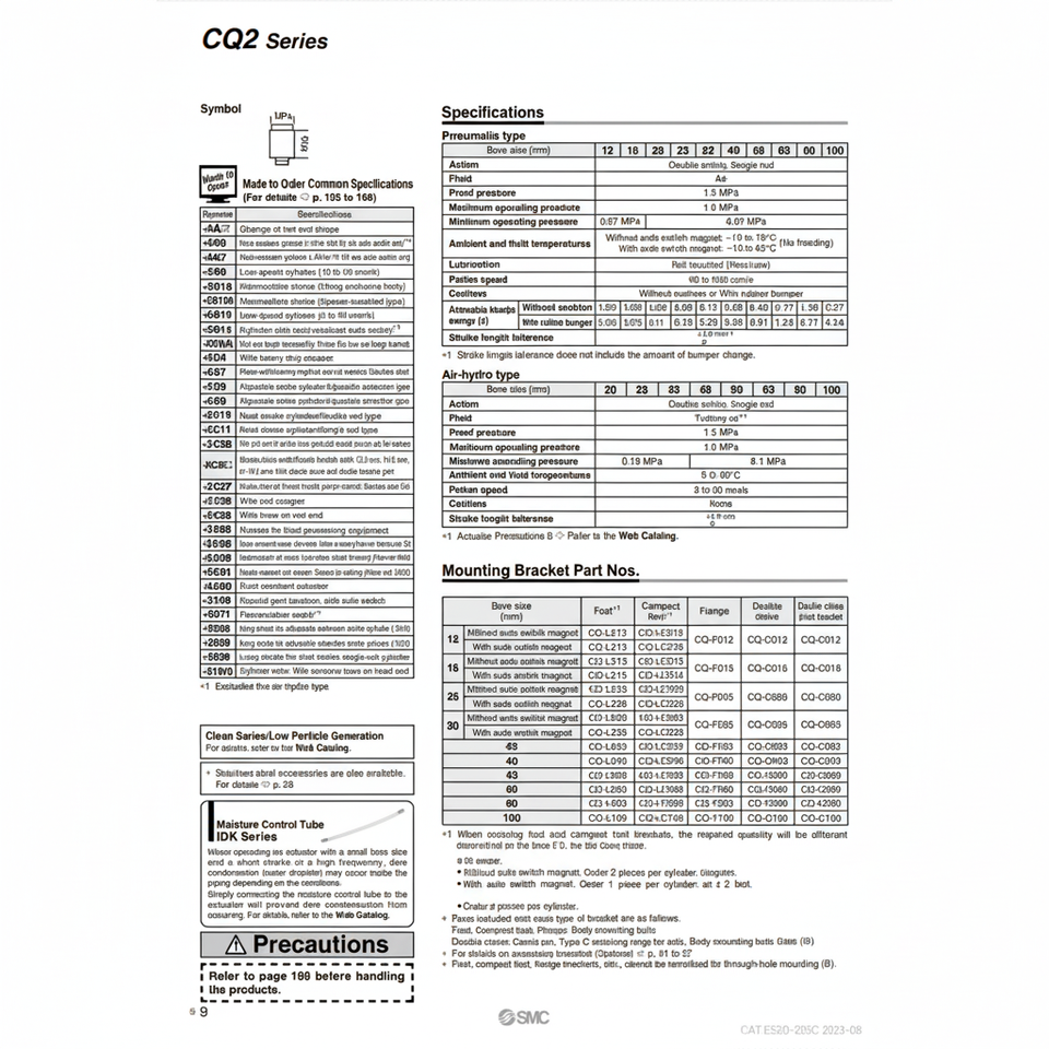 กระบอกสูบขนาดกะทัดรัด CDQ2B180-250DCMZ ชิ้นส่วนนิวเมติก SMC