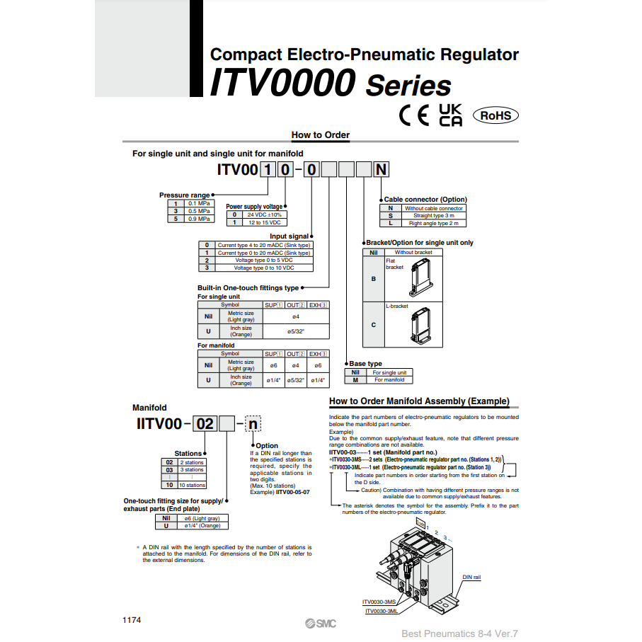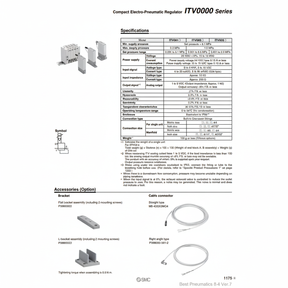 ตัวควบคุมไฟฟ้า-นิวเมติกขนาดกะทัดรัด SMC ITV0030-3BN ชิ้นส่วนนิวเมติก