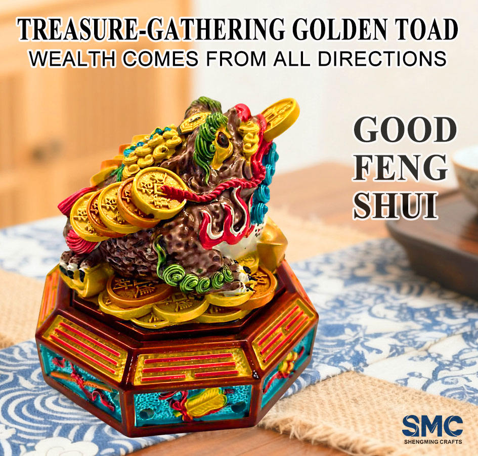 รูปปั้นกบทองเรซิ่น SMC แบบสั่งทำพิเศษ งานศิลปะ 3 มิติ ของตกแต่งบ้าน/สำนักงาน เสริมฮวงจุ้ย เสริมโชคลาภ