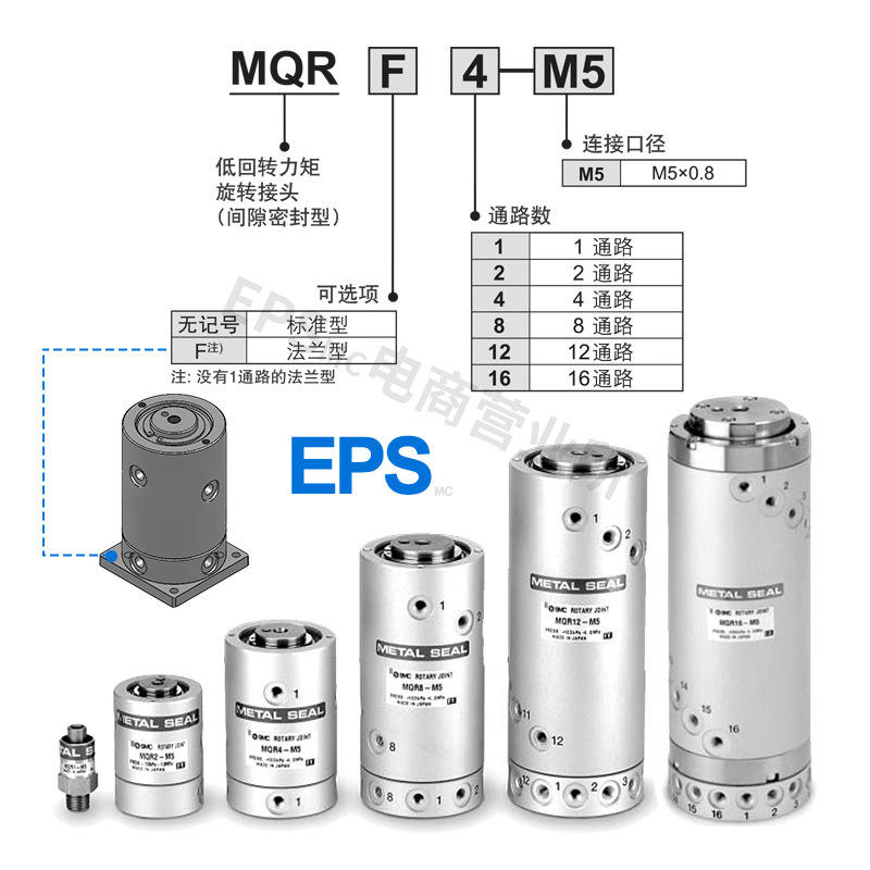 ข้อต่อโรตารี่แบบนิวเมติกความเร็วสูง SMC รุ่น MQR2/4/8/12/16-M5 ข้อต่อแบบสลิปริงนิวเมติกหมุนได้ 360 องศา แบบหลายทาง