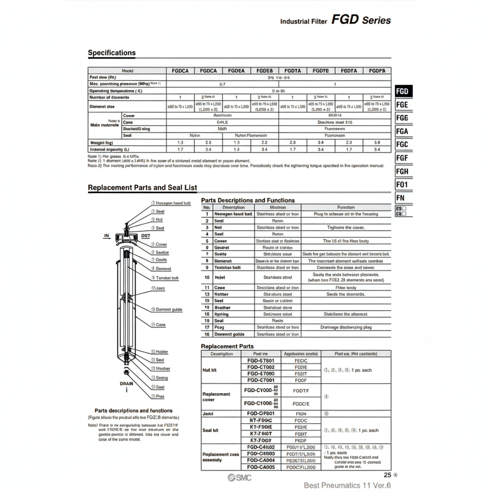 FGDTA-04-S070T กรองอากาศอุตสาหกรรม SMC ส่วนประกอบนิวเมติกส์