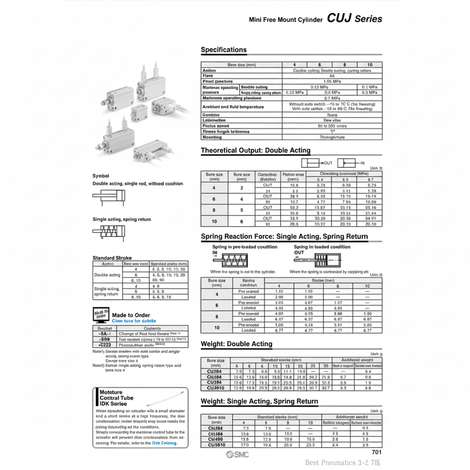 กระบอกเมาท์ฟรี SMC ขนาดเล็ก CDUJB8-25D ชิ้นส่วนนิวเมติก