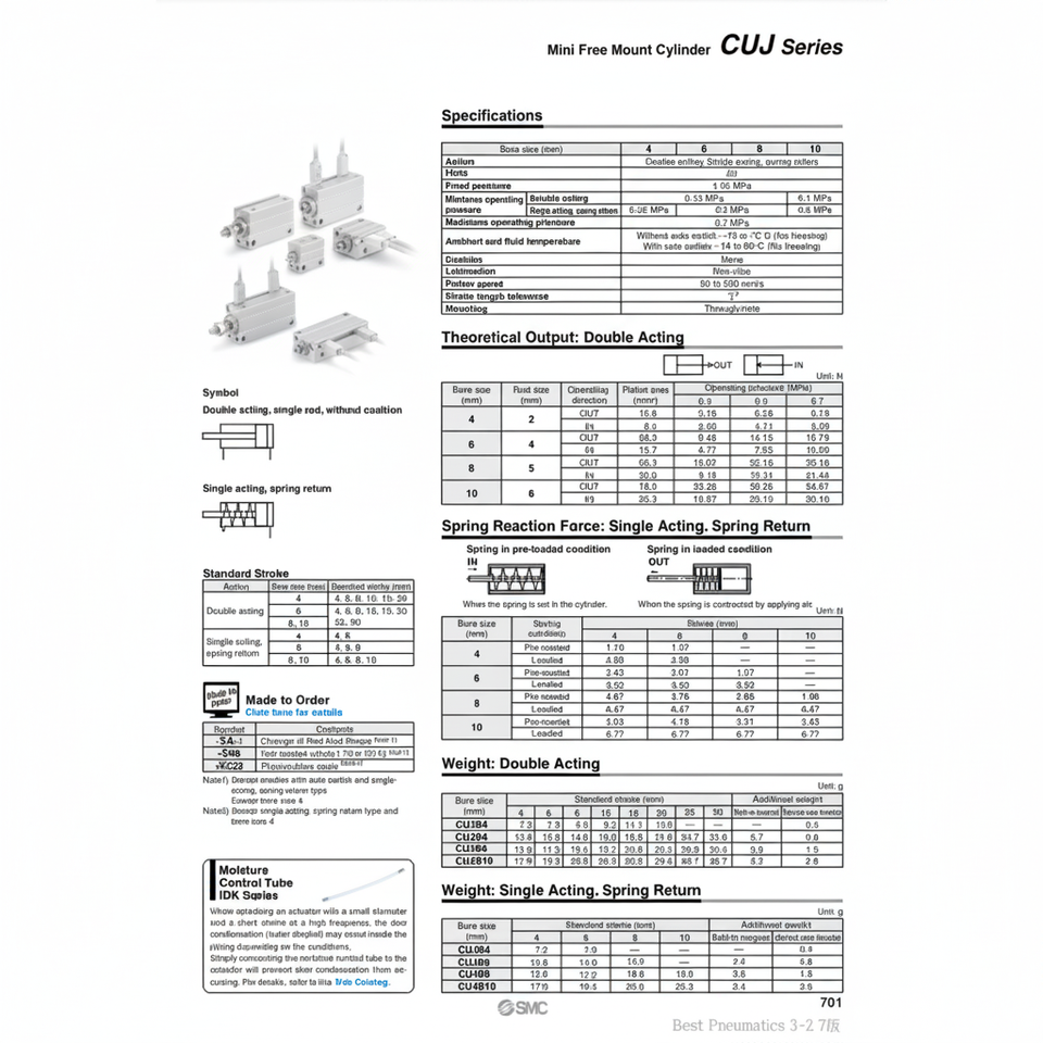 กระบอกเมาท์ฟรี SMC ขนาดเล็ก CDUJB8-10DM ชิ้นส่วนนิวเมติก