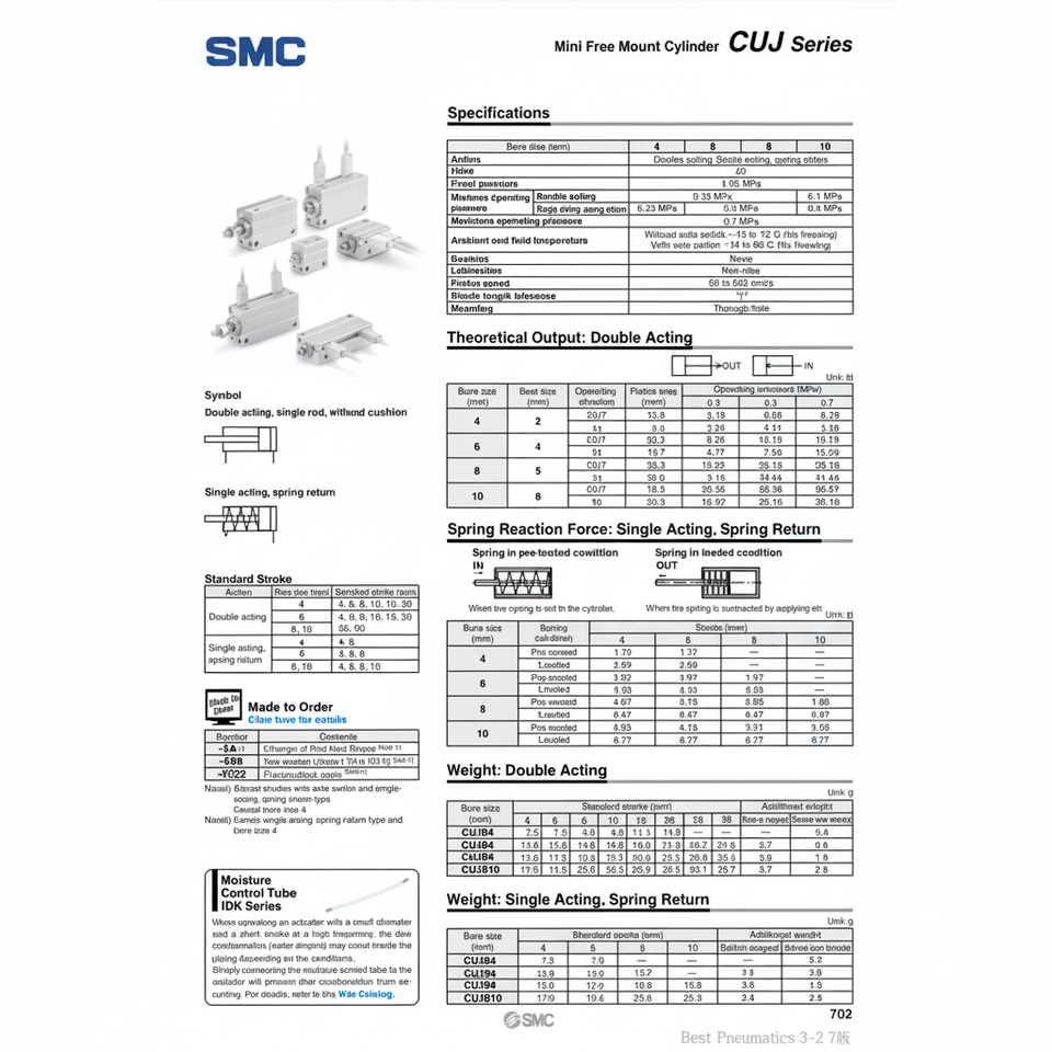 กระบอกเมาท์ฟรี SMC ขนาดเล็ก CUJB8-4D ชิ้นส่วนนิวเมติก