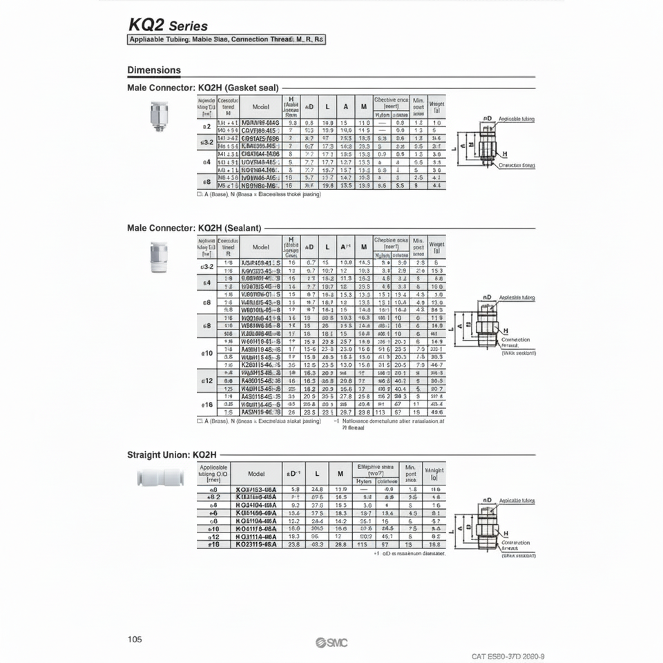 ชิ้นส่วนนิวเมติก KQ2H08-02AS SMC แบบ one-touch