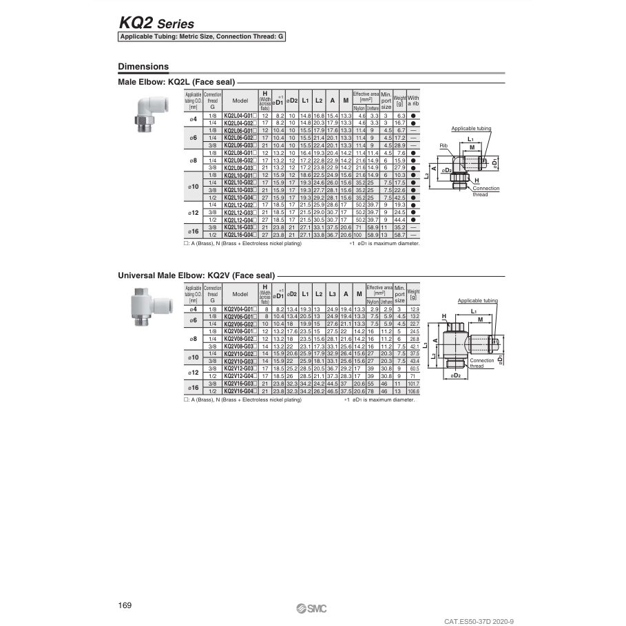 ชิ้นส่วนนิวเมติก KQ2L12-G04N ฟิตติ้ง SMC