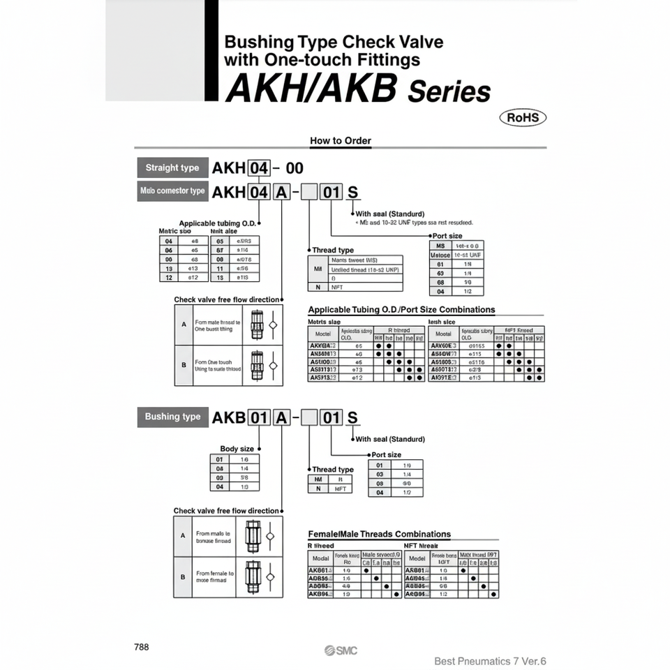 วาล์วตรวจสอบ AKH06-00นิวเมติก SMC