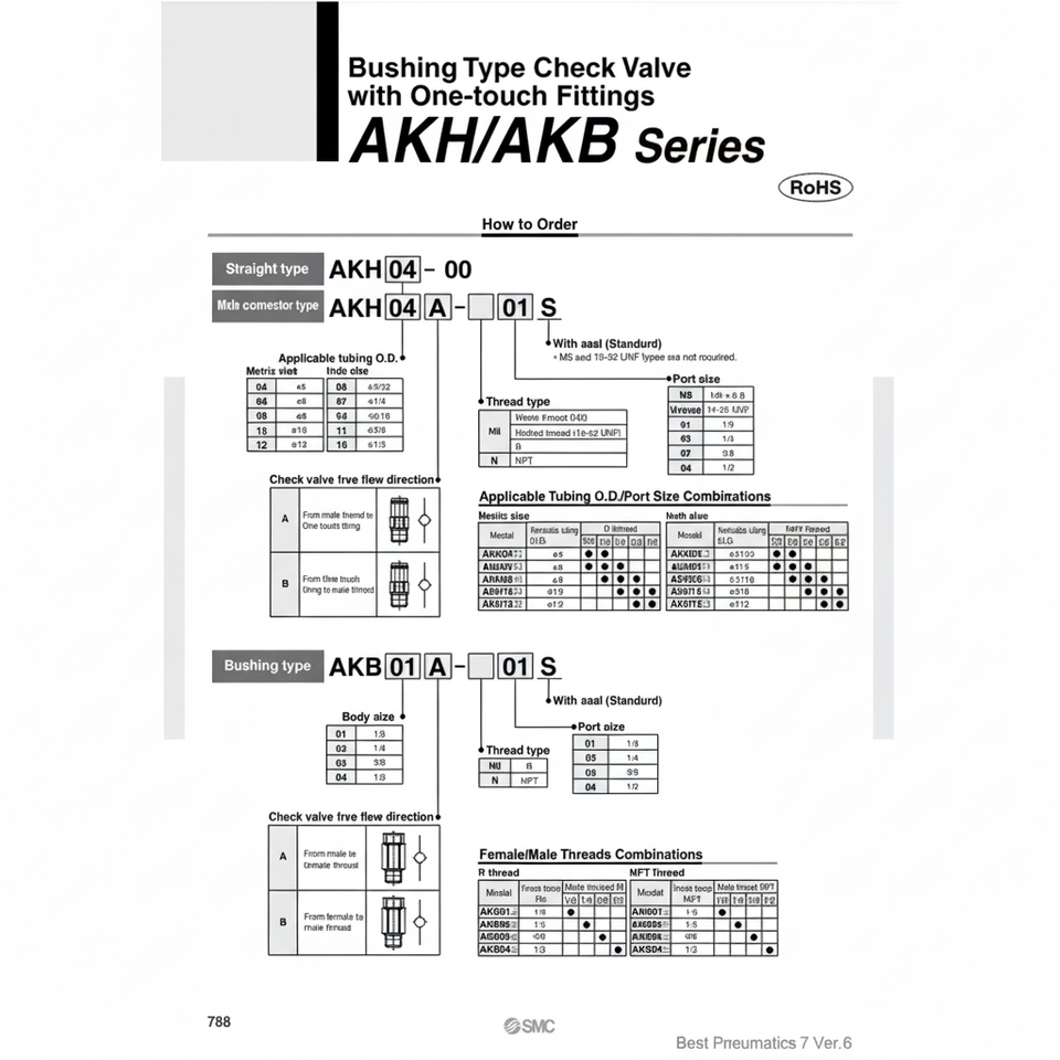 วาล์วตรวจสอบ AKH10-00นิวเมติก SMC