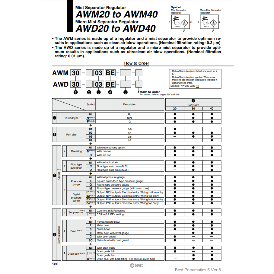 เครื่องควบคุมความดันตัวแยกหมอกขนาดเล็ก AWD40-04E1นิวเมติกส์ SMC