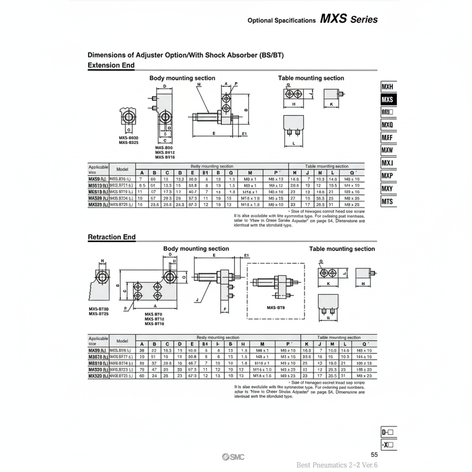 นิวเมติก SMC ปลายปรับได้ MXS-AT8ตัวปรับชิ้นส่วนนิวเมติก