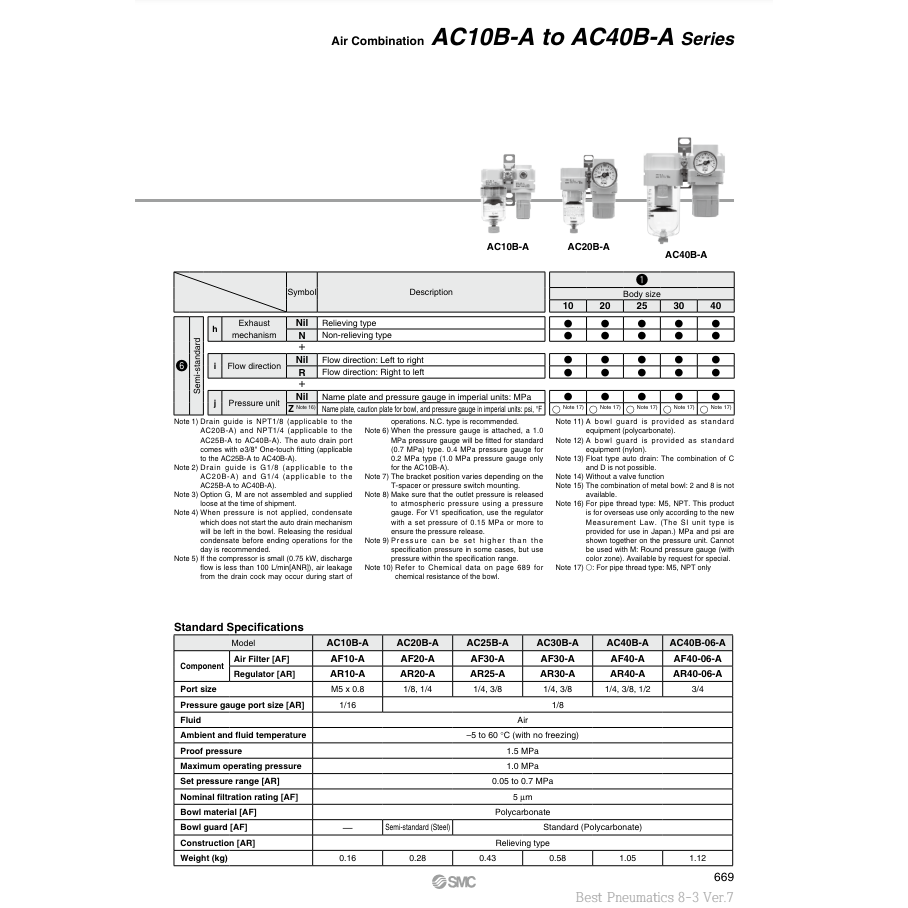 การรวมกันของลม AC30B-02DG-TV1-A ชิ้นส่วนนิวเมติก SMC